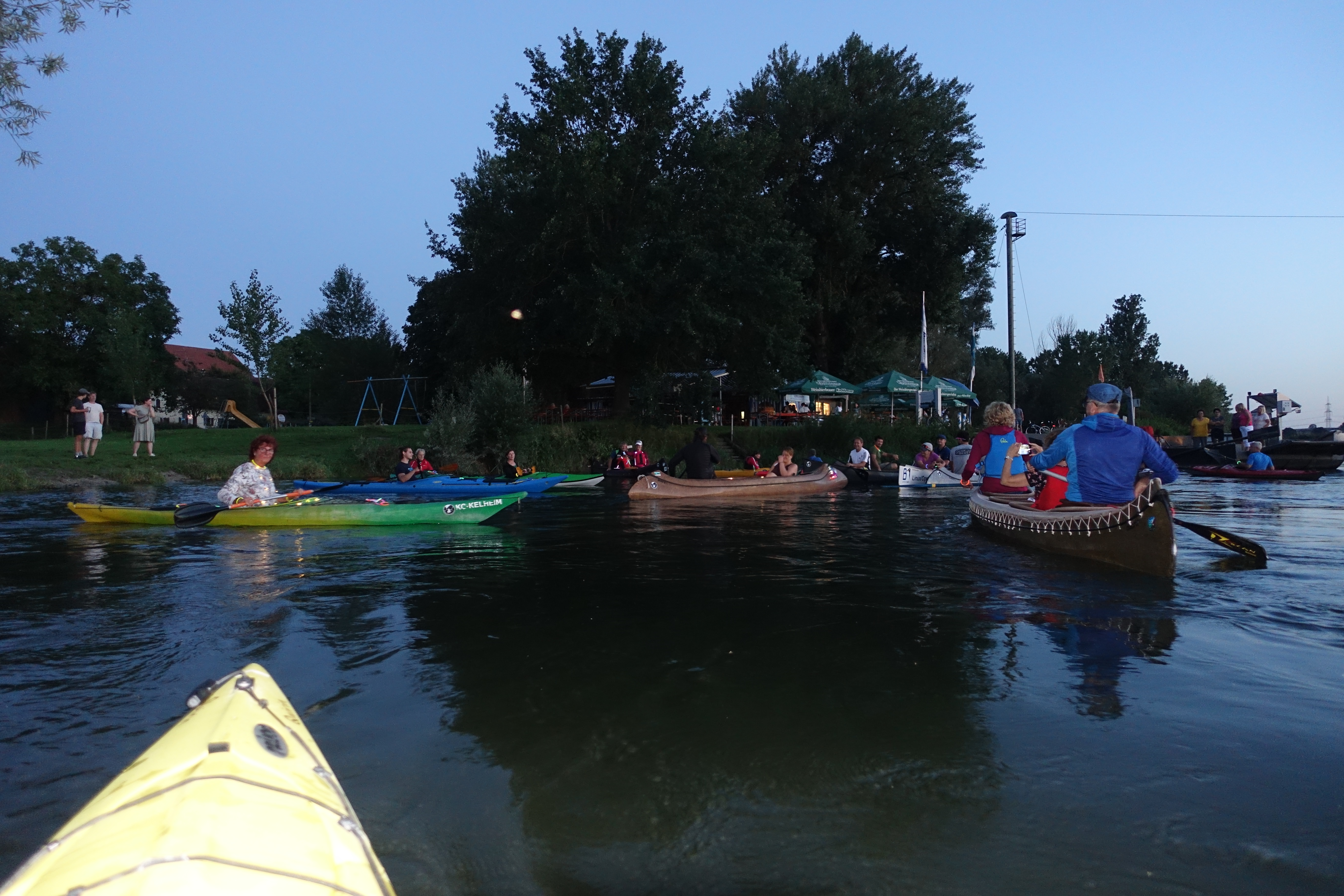 Bilder der Nachtfahrt des Kanu-Club Kelheim am 18. August 2023 auf der Donau von der Fähre Einig bis Kelheim.
